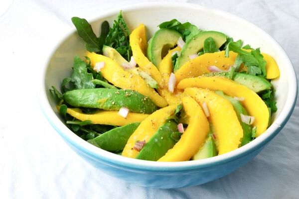 Сегодня мы вам расскажем, как приготовить вкусный, яркий и полезный салат из минимального количества ингредиентов. В его состав, в частности, входят: манго, авокадо, зелень, лук, а также соль и растительное масло.