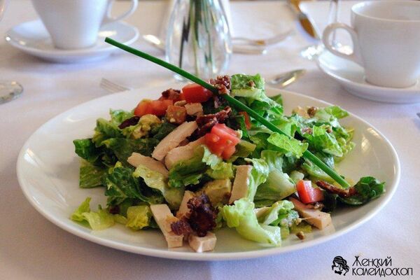Выкладываем салат в красивую тарелку. Украшаем его зеленью и угощаем им своих родных.